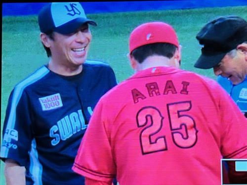 このときなんか長くかかってたな。話し込んでるというより、球審の話を長々と聞いてる感じだったな。