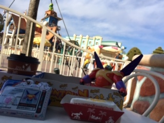 プラザを周ってトゥーンタウンにやってきた男前な着物の殿方を見ながら食べたよ。