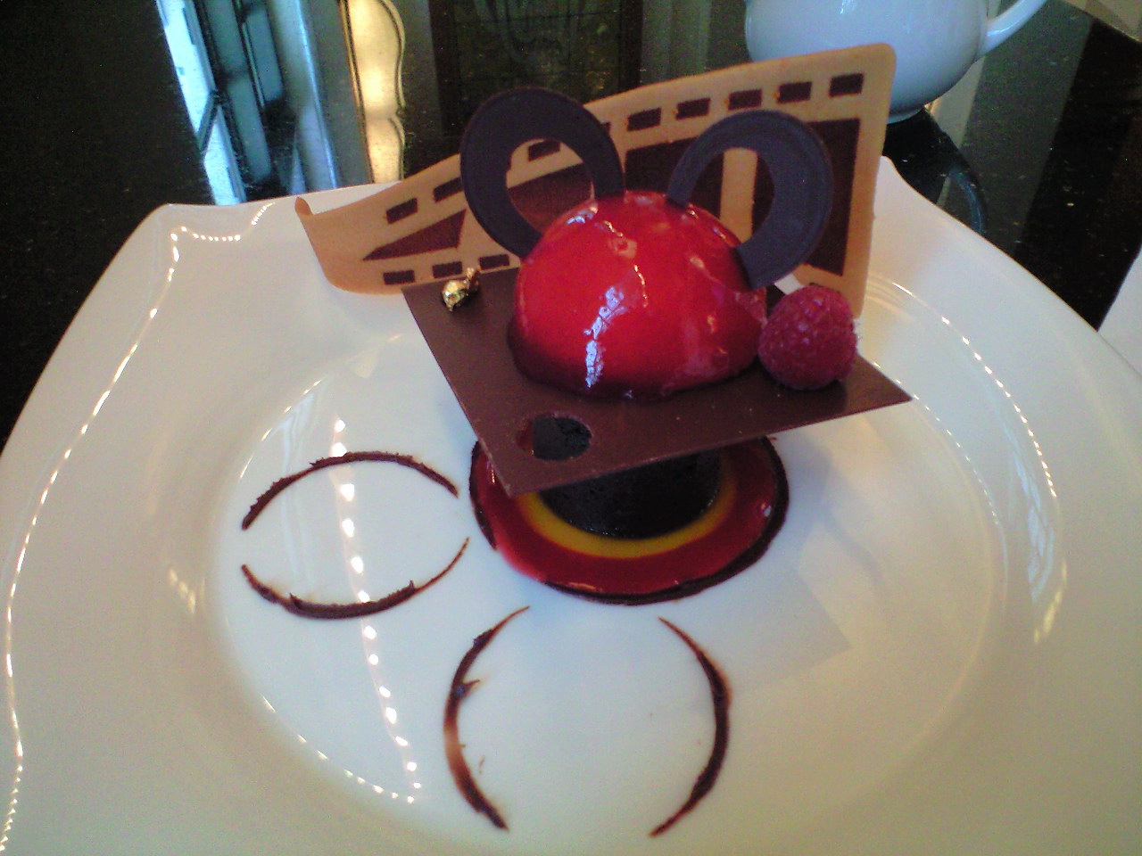 ムースふわふわ!ショコラの中がとろとろ!形もかわいいよね^^食べる前もミッキー。そして食べたあとも・・・