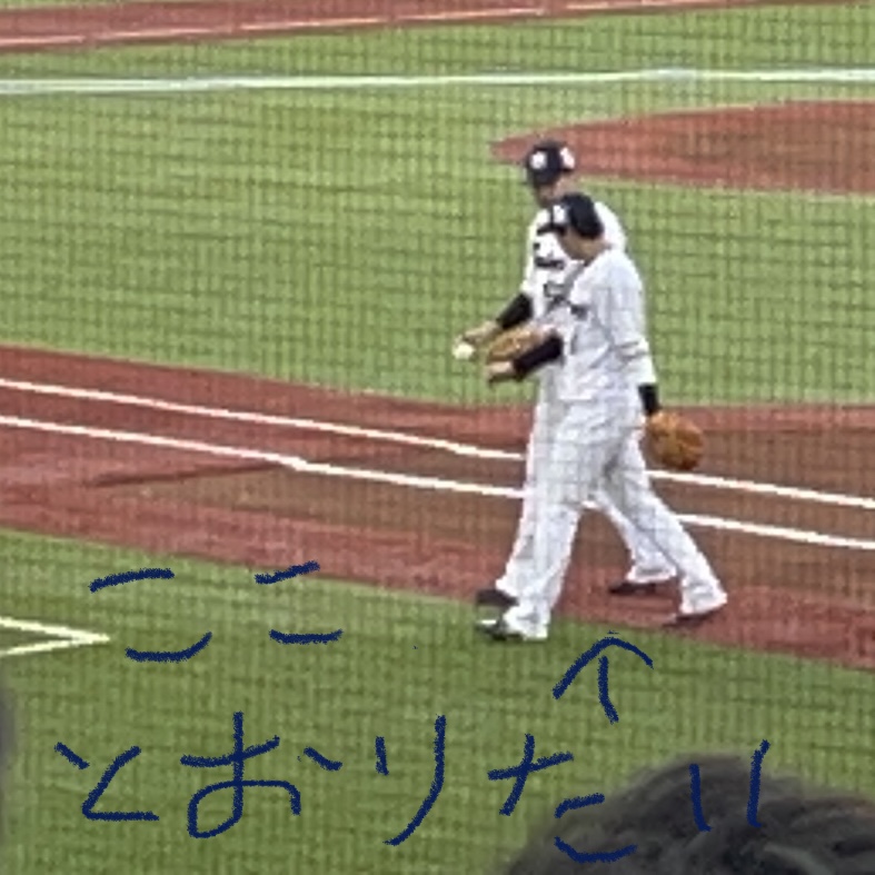 キャッチボールからグラブタッチ(角度的に見えなかったけど)して、ベンチに歩いていく一歩目からずっと歩調がぴったり一緒なんだけどw