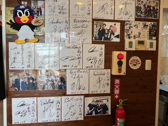 高江洲そばきた。入ってすぐのサインの配置、だいぶかわったね。今年の分もあるし。